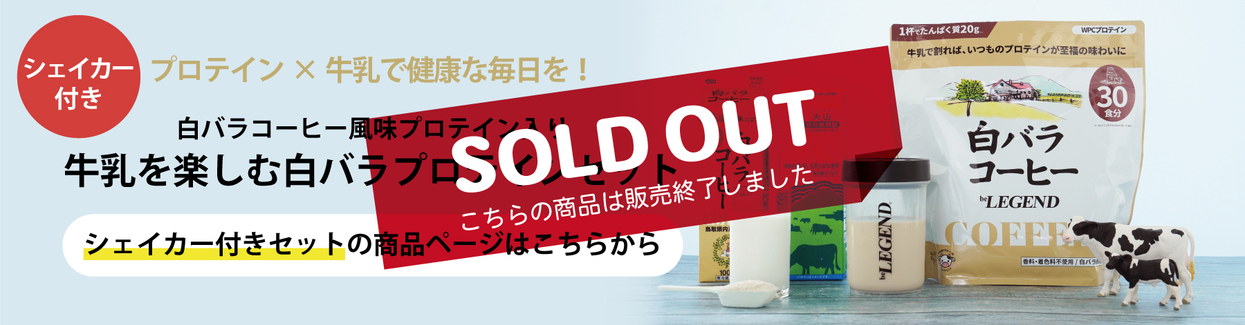 プロテインブランド「beLEGEND」と白バラコーヒーがコラボした「白バラコーヒー風味プロテイン」に、白バラ牛乳と白バラコーヒーを加えた、ここでしか手に入らない期間限定&数量限定セットです。牛乳で割って飲むことでまるで“白バラコーヒー”のような味わいが楽しめるこのプロテインは、1杯でたんぱく質を20g以上含み、ビタミンやカルシウムも摂取できるため、毎日の健康習慣にぴったり。さらに本物の白バラコーヒーとの飲み比べを通して味の再現度を楽しむことができます。届いたその日からすぐに試せるシェイカー付きで、プロテインが初めての方でも安心してお楽しみいただけます。
