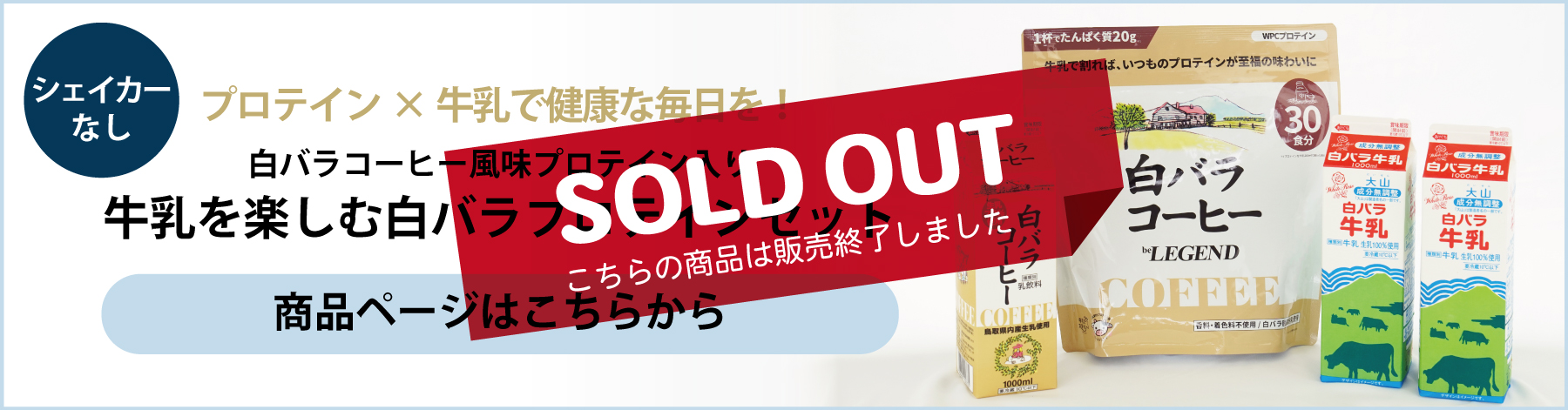 全国にもファンの多い大山乳業の人気商品「白バラコーヒー」の味をイメージしたプロテインで、牛乳で割った時にこそ白バラコーヒーのような味わいが最大限に引き出されます。
