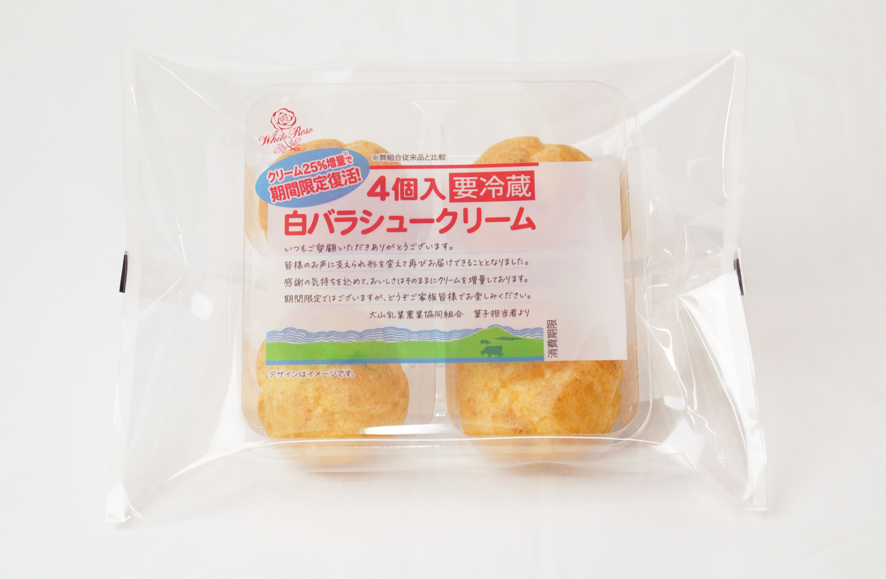 昨年、惜しまれつつ販売を終了した「白バラシュークリーム(6個入)」。「また食べたい」「この季節が来ると思いだす」。そんなお声を多くいただき、入数と包装形態を変更することで、期間限定の販売が実現しました。