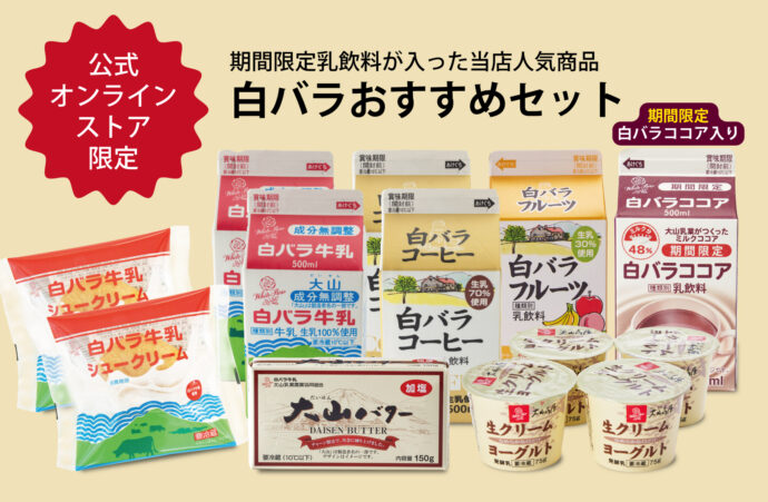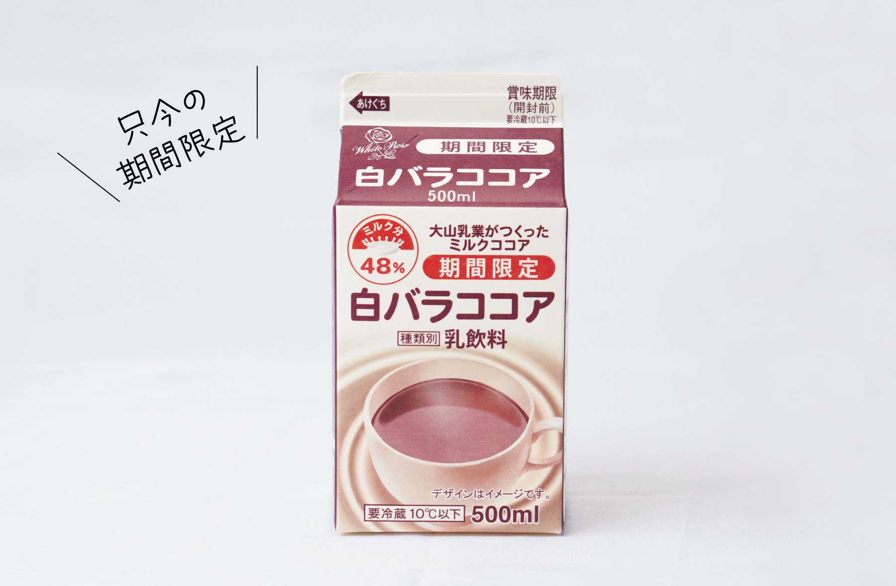 白バラおすすめセットの魅力をもう1つ。それは、季節に合わせて入れ替わる乳飲料です。白バラ商品には「期間限定商品」があり、なかでも季節に合わせて発売される乳飲料は白バラファンに人気で毎シーズン心待ちにしている方もおられるとか。